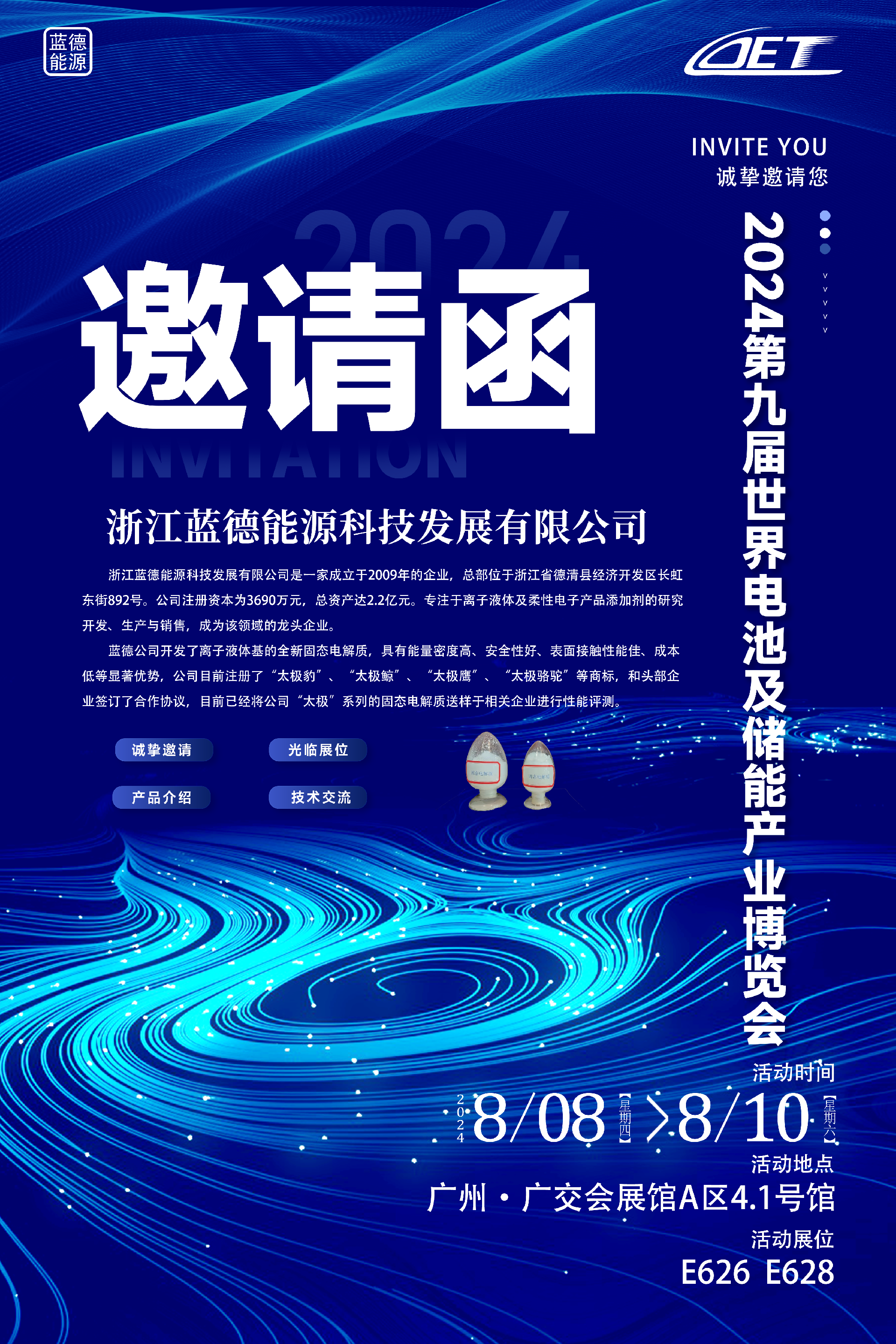 Ldet Technology, 8 Ağustos - 10 Ağustos tarihleri arasında 9. Guangzhou Dünya Pil ve Enerji Depolama Endüstrisi Fuarı'na katılacak. Pil endüstrisindeki şirketleri ve uzmanları, ürün ve teknolojiler hakkında fikir alışverişinde bulunmak üzere standımızı ziyaret etmeye davet ediyoruz!